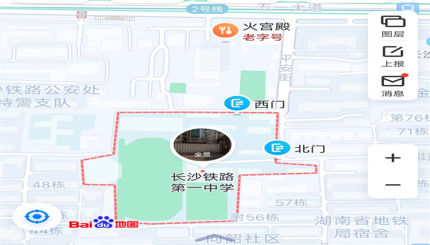 2、長沙鐵路第一中學(xué)(長沙市芙蓉區(qū)向韶村平安街90號-正門)