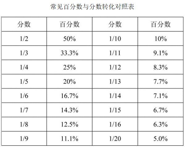 ②直除法:分?jǐn)?shù)比較時,通過觀察答案選項或被比較數(shù)據(jù),若其差距較大,則在分?jǐn)?shù)值量級一致的情況下通過直除商首位或首兩位來求得結(jié)果或進(jìn)行相應(yīng)的比較。