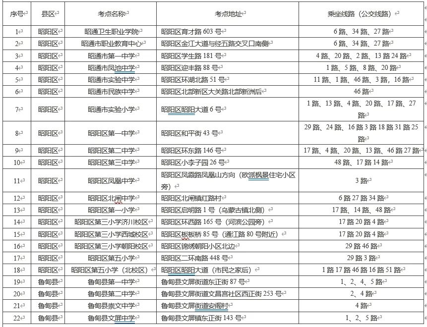 三、為方便考生乘車,2月25日上午6:00—8:00,昭交集團(tuán)將增派從昭陽區(qū)前往魯?shù)榭h的公交車輛,始發(fā)點:昭陽區(qū)煙草專賣局北門(老客運(yùn)站,昭陽大道252號)。同時,在2月25日上午6:30—8:30期間,也將增派途經(jīng)昭陽區(qū)18個考點方向的公交車輛。