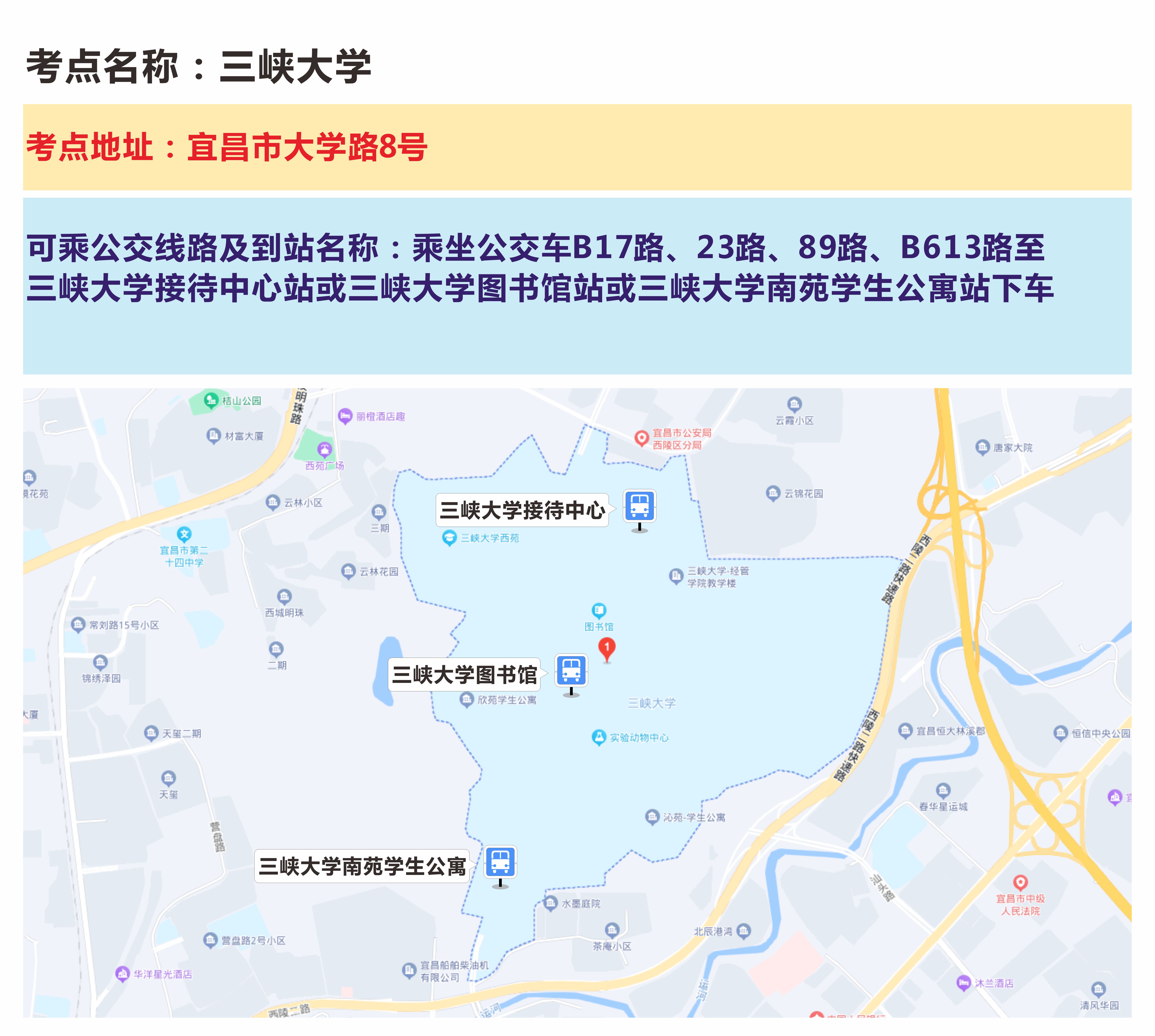 2、湖北三峽職業(yè)技術(shù)學院考點(宜昌市體育場路31號)