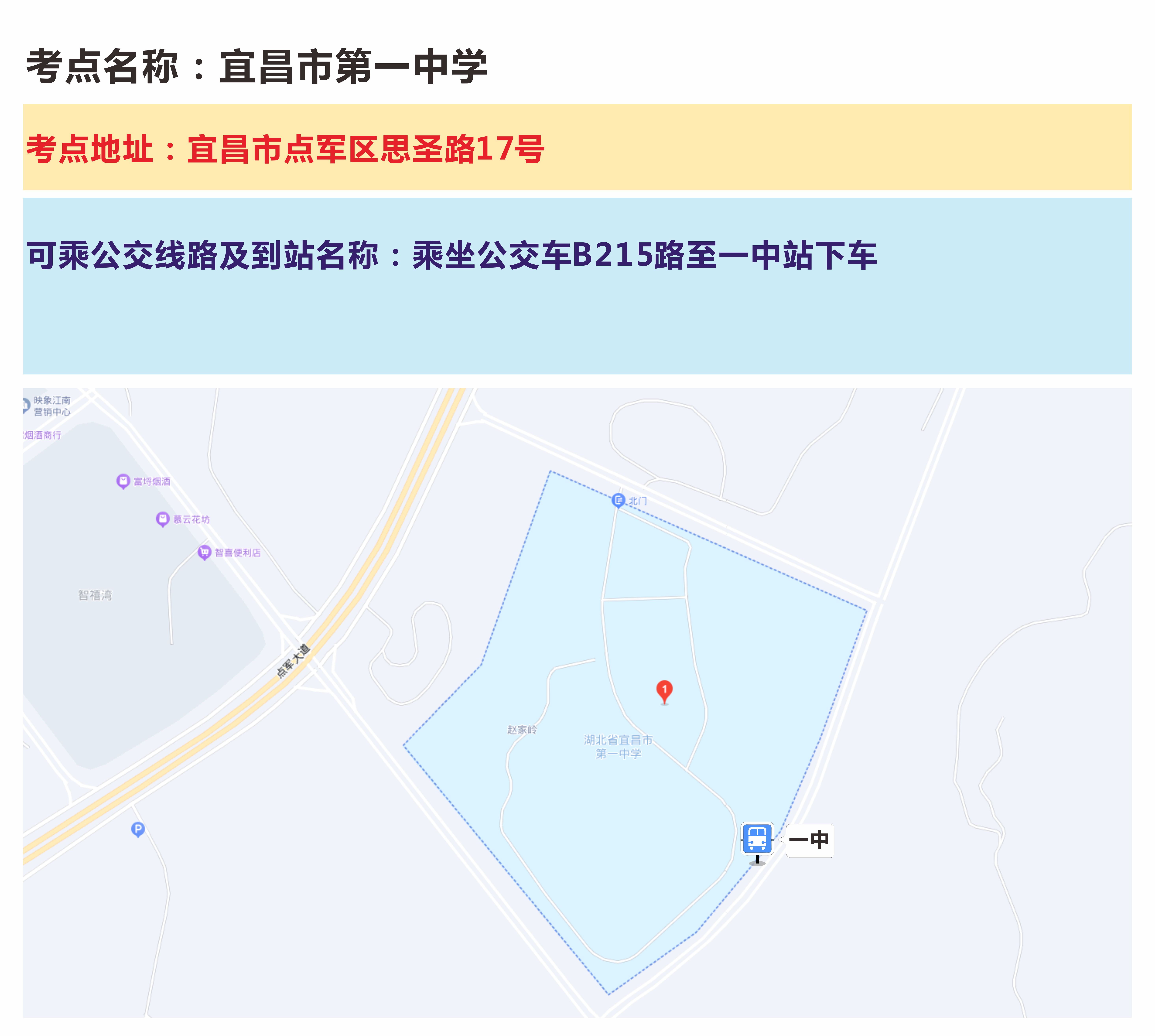 4、宜昌市第一中學考點(宜昌市點軍區(qū)思圣路17號)