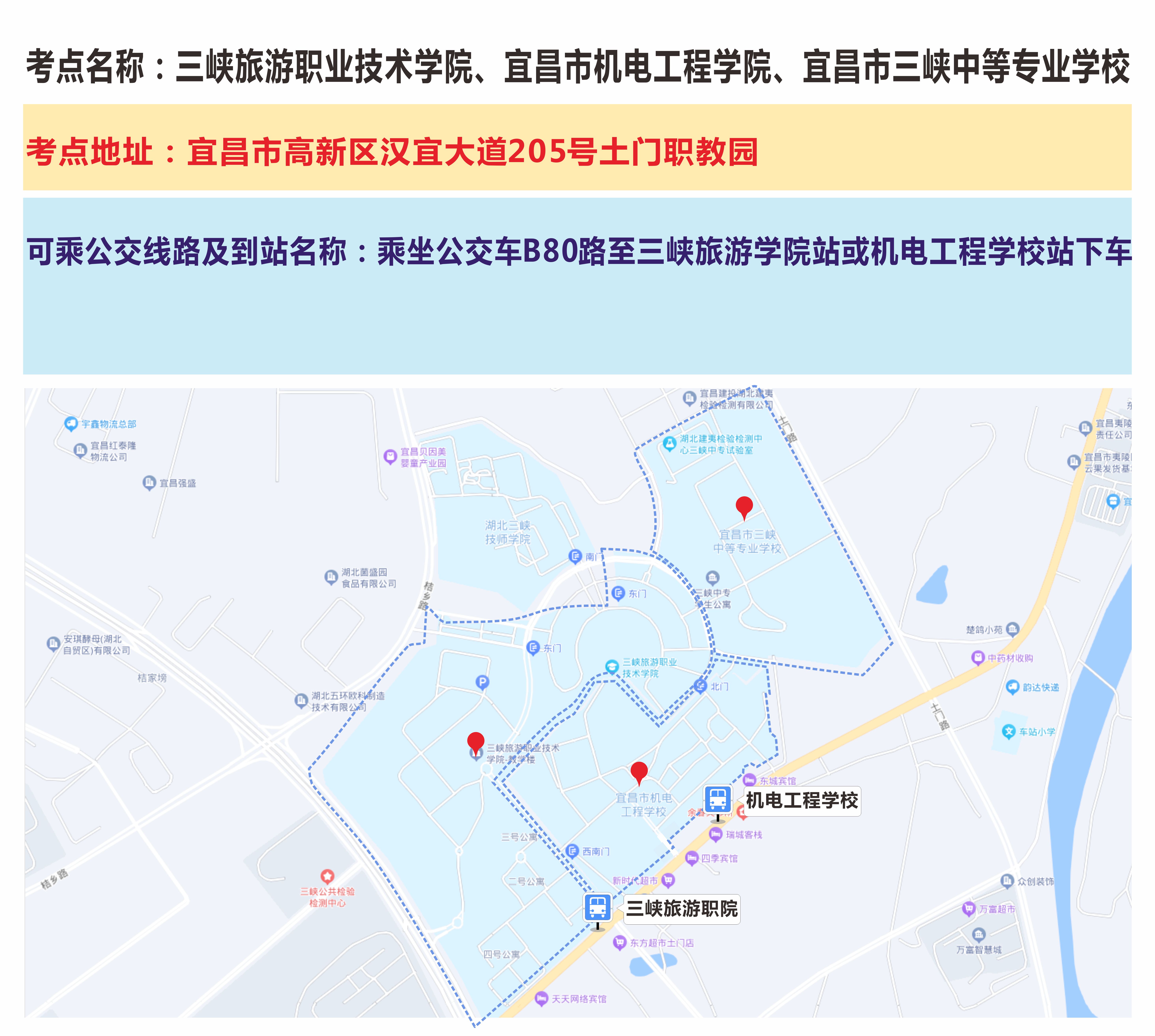 5、三峽旅游職業(yè)技術(shù)學院考點(宜昌市職教園漢宜大道205號);