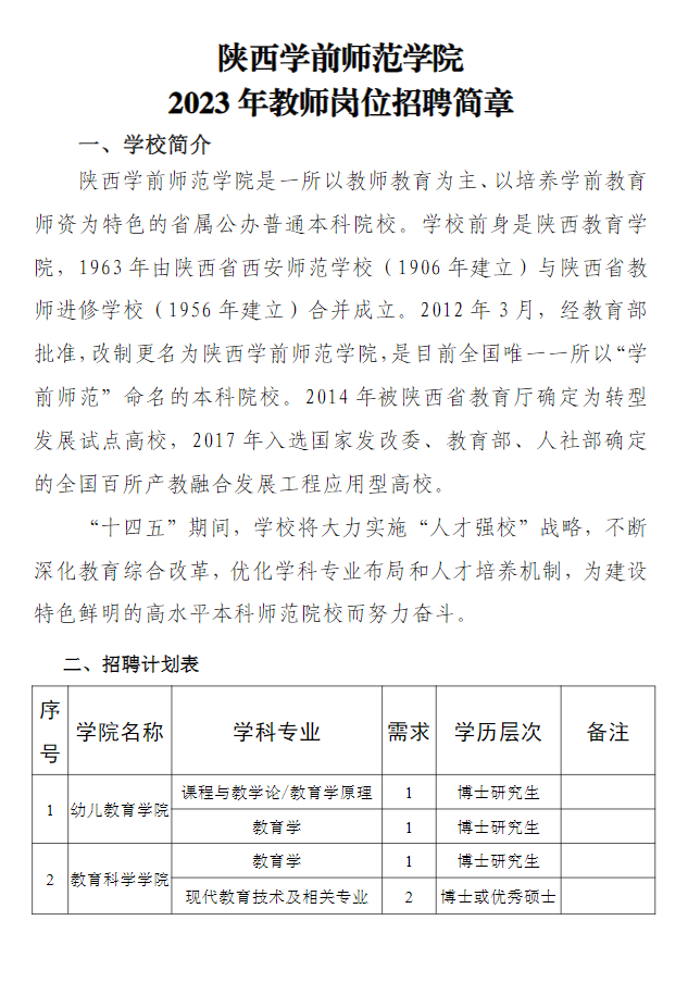 2023年陜西學前師范學院教師崗位招聘簡章
