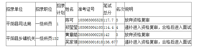 2023年平陽縣各級機關單位考試錄用公務員遞補入圍資格復審(體能測評)人員名單(四)