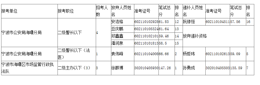 關(guān)于公布2023年寧波市海曙區(qū)各機關(guān)單位考試錄用公務(wù)員資格復(fù)審遞補人員名單的公告(一)