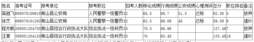 2023年常山縣各級機(jī)關(guān)單位考試錄用公務(wù)員放棄和遞補(bǔ)入圍資格復(fù)審人員名單公布
