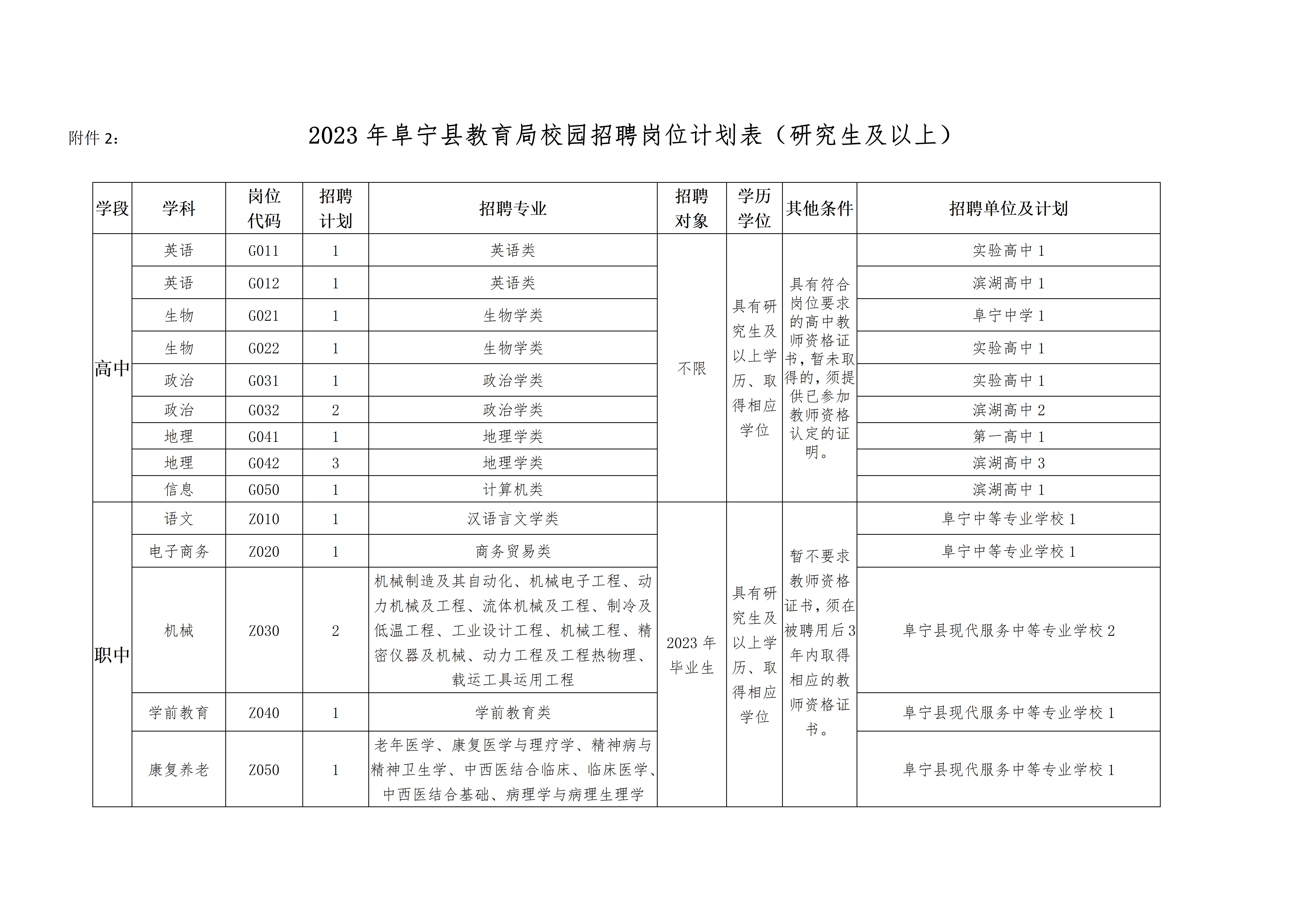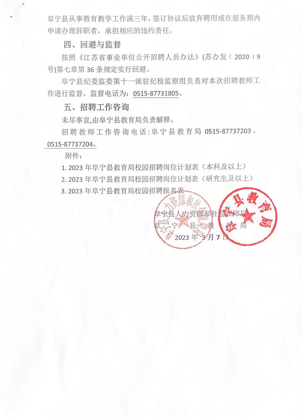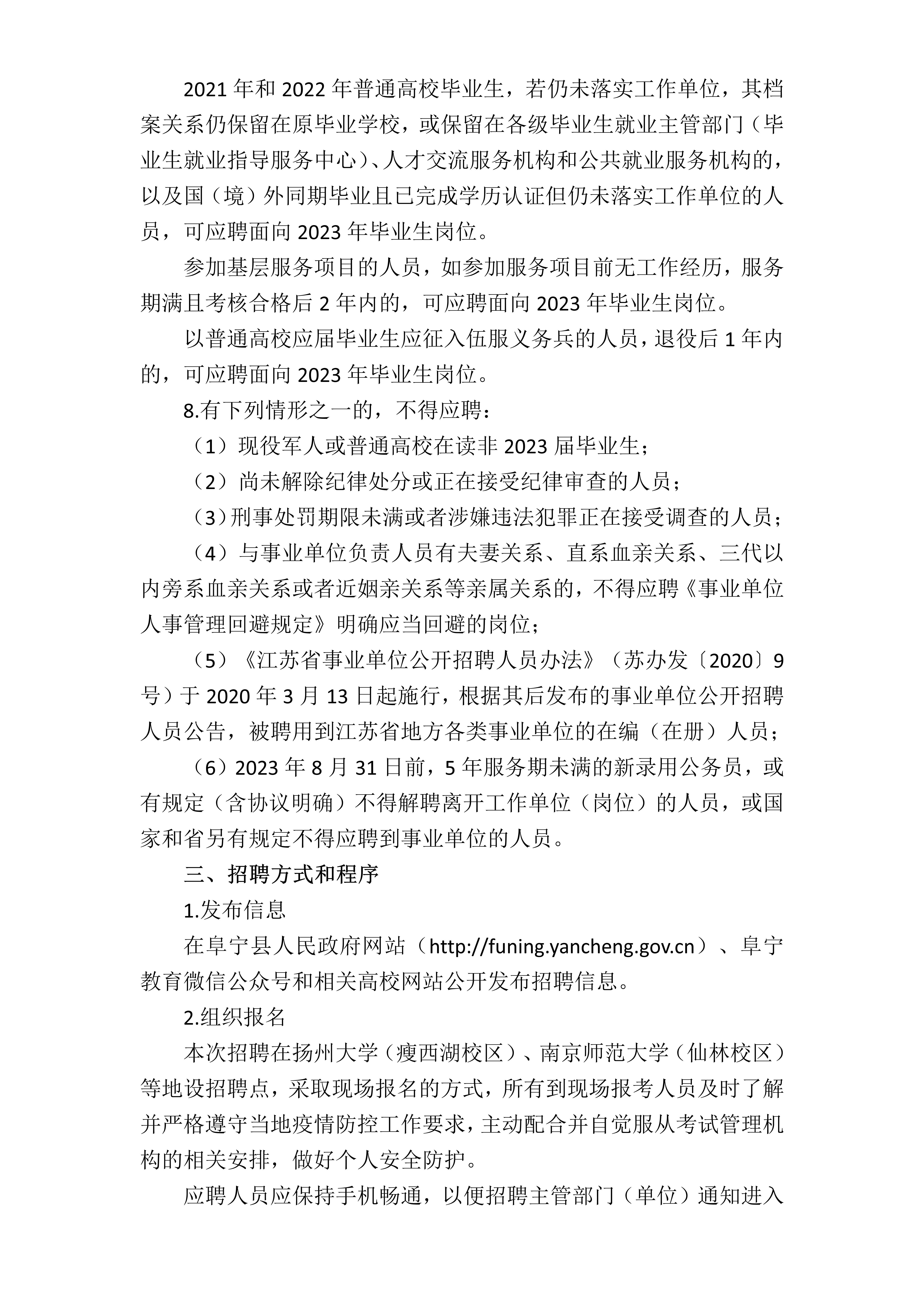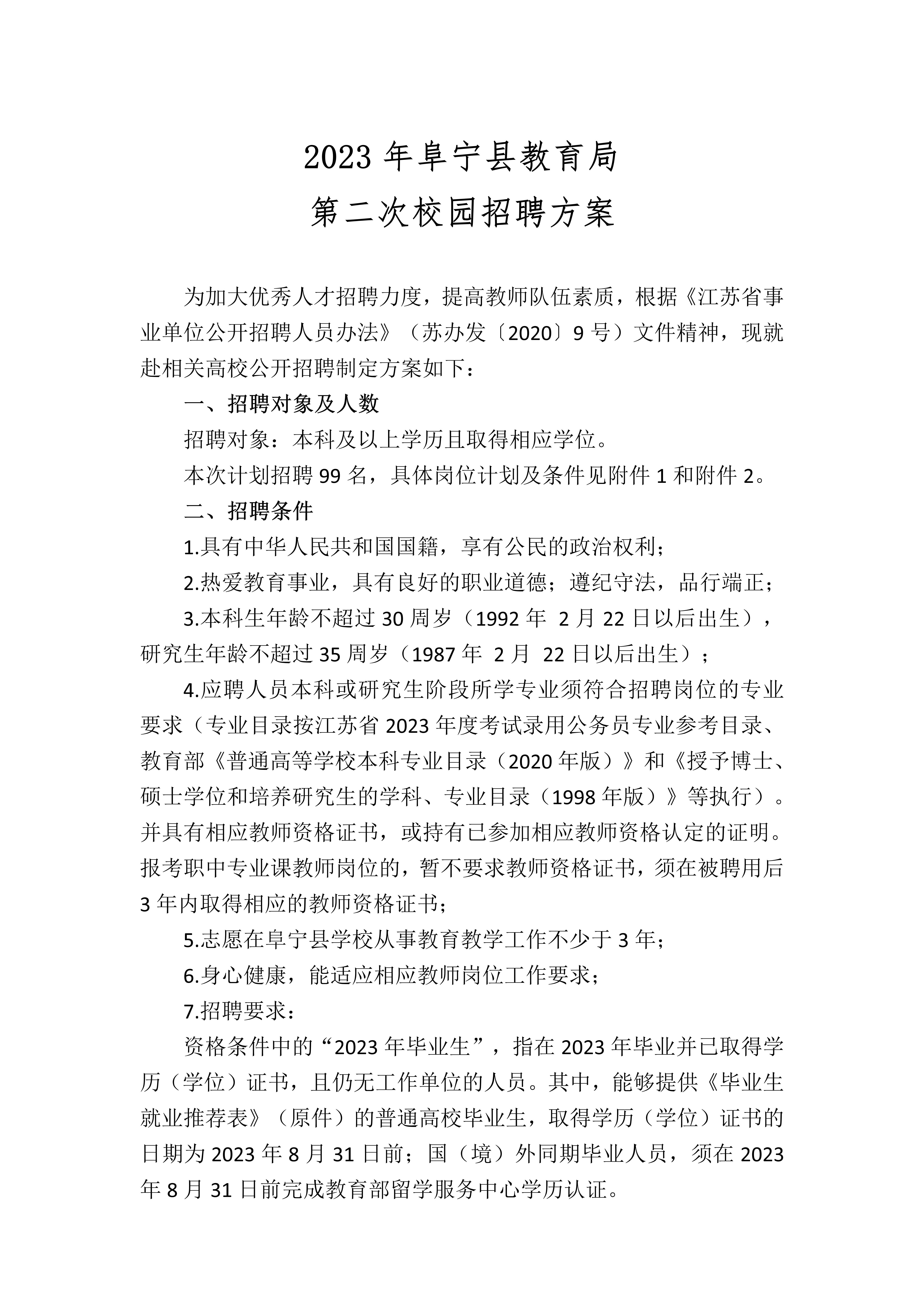 2023年阜寧縣教育局第二次校園招聘方案