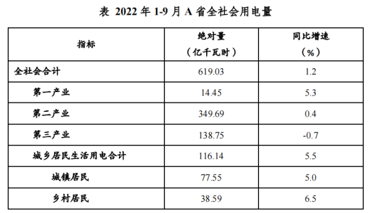 問(wèn)題:2022年1-9月A省鄉(xiāng)村居民生活用電量占城鄉(xiāng)居民生活用電量的比重與上年同期相比約:( )