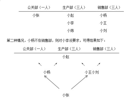 C.公關(guān)部:小楊;生產(chǎn)部:小趙、小張、小王;銷售部:小陳、小劉、小李