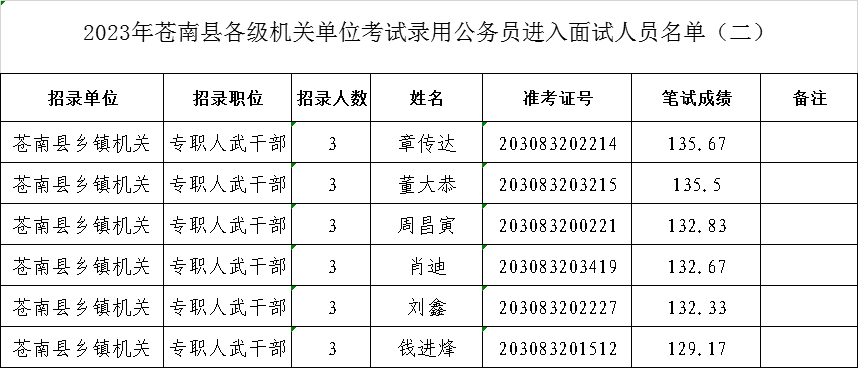 2023年浙江公務(wù)員考試溫州蒼南縣面試人員名單(二)