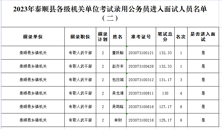 2023年浙江公務(wù)員考試溫州泰順縣面試人員名單(二)