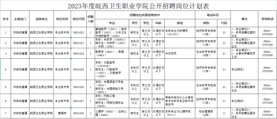 2023年度學(xué)院參加六安市市直事業(yè)單位(含中小學(xué)新任教師)公開招聘工作人員,共招聘7名,具體情況如下: