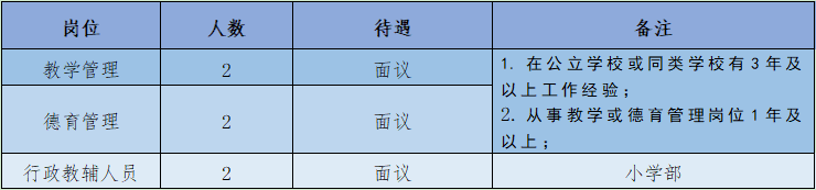 應(yīng)屆大學畢業(yè)生應(yīng)聘小學、初中教師年薪8萬元(含五險一金)起,有工作經(jīng)驗的優(yōu)秀教師待遇面議。