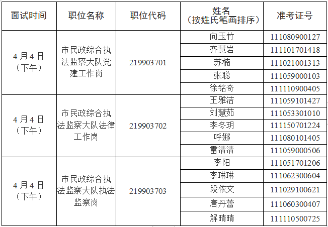 根據(jù)公務(wù)員法和公務(wù)員錄用有關(guān)規(guī)定,現(xiàn)就市委社會工委市民政局2023年度考試錄用公務(wù)員面試有關(guān)事宜通知如下: