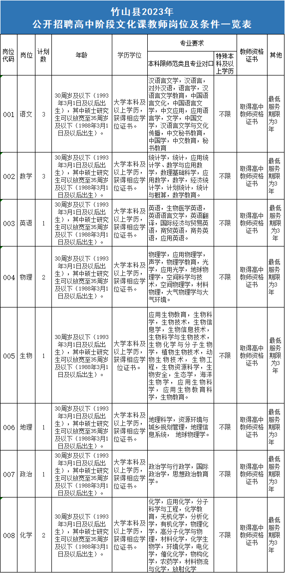 竹山縣2023年公開招聘高中階段學(xué)校教師公告
