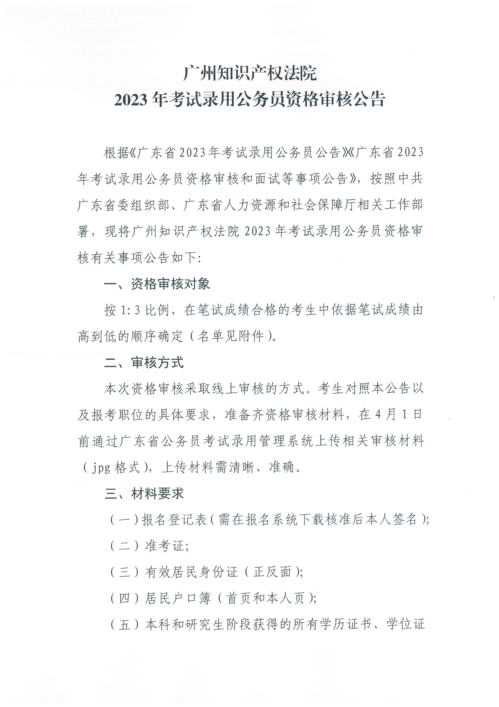 廣州知識產(chǎn)權(quán)法院2023年考試錄用公務員資格審核公告