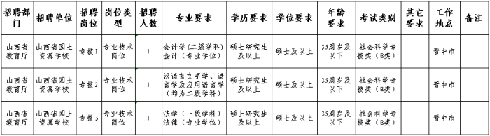 山西省教育廳所屬事業(yè)單位山西省國土資源學(xué)校2023年公開招聘工作人員公告