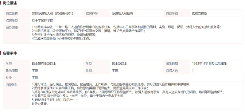 (二)紅十字國(guó)際學(xué)院負(fù)責(zé)職責(zé)、待遇等方面政策咨詢。