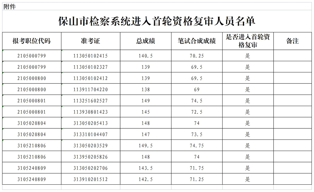 附件:保山市檢察系統(tǒng)進入首輪資格復(fù)審人員名單