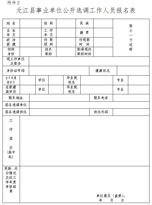 2.元江縣事業(yè)單位公開選調(diào)工作人員報(bào)名表