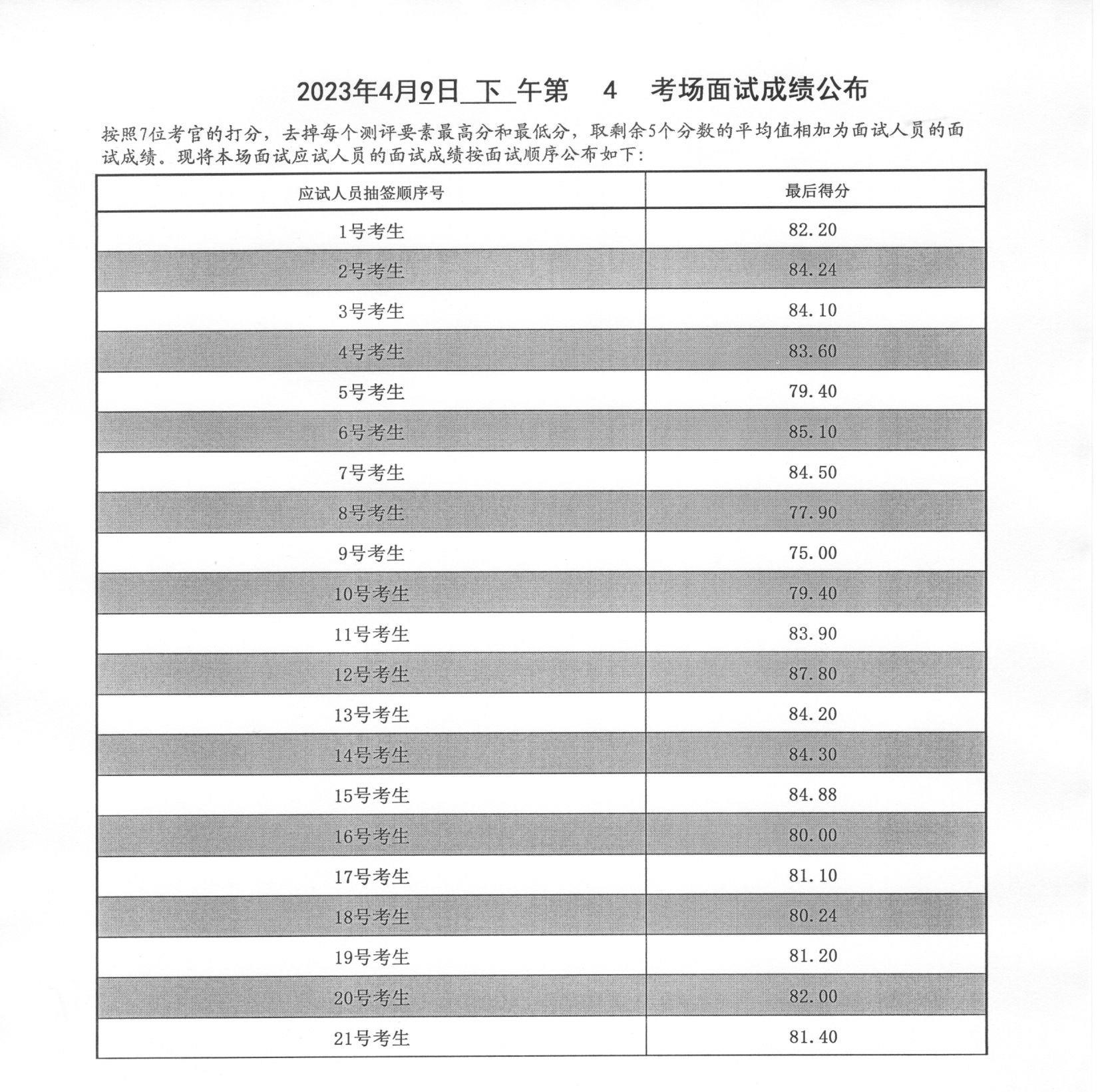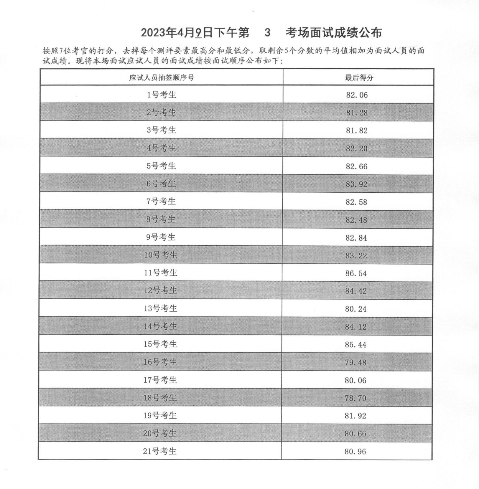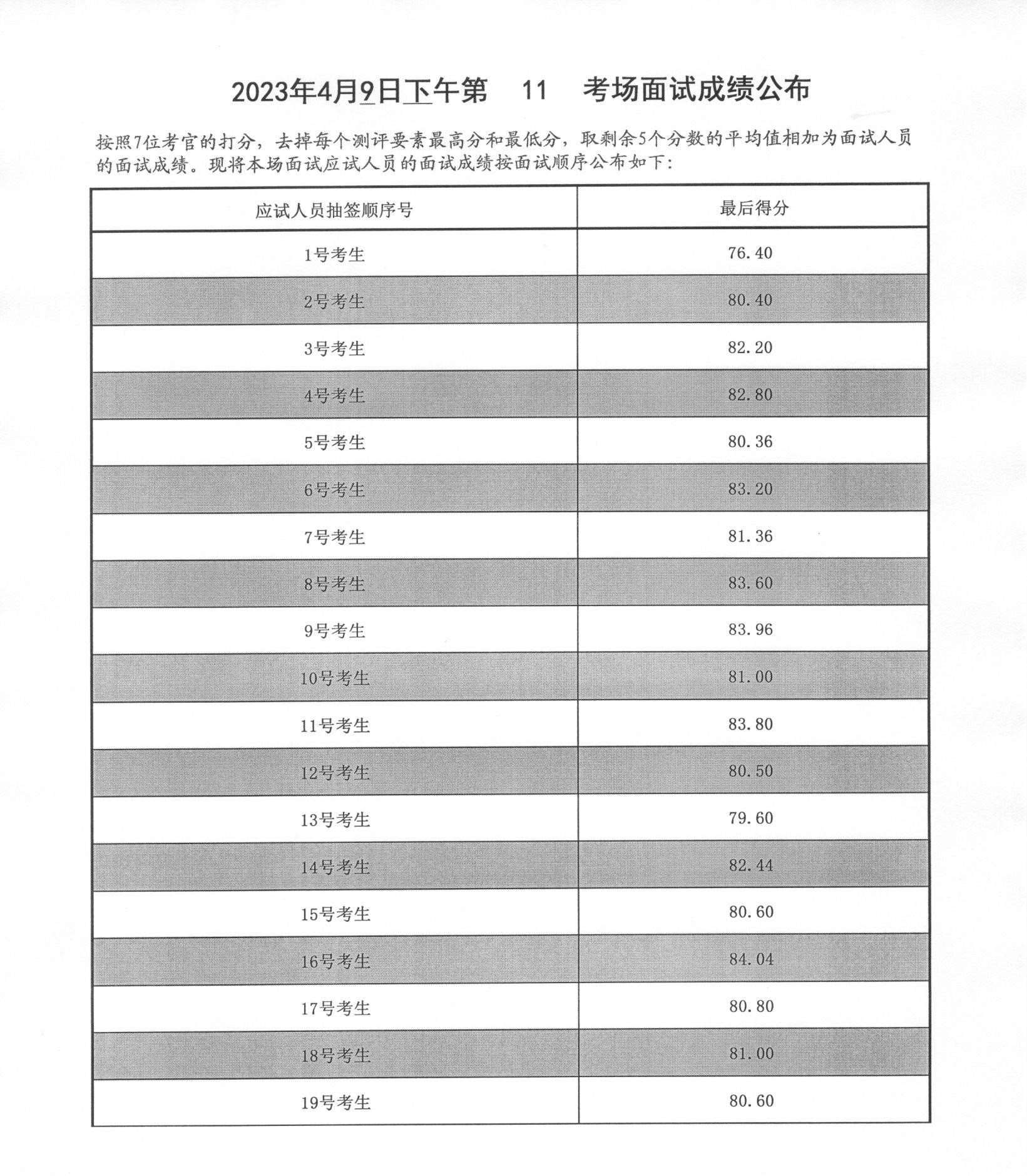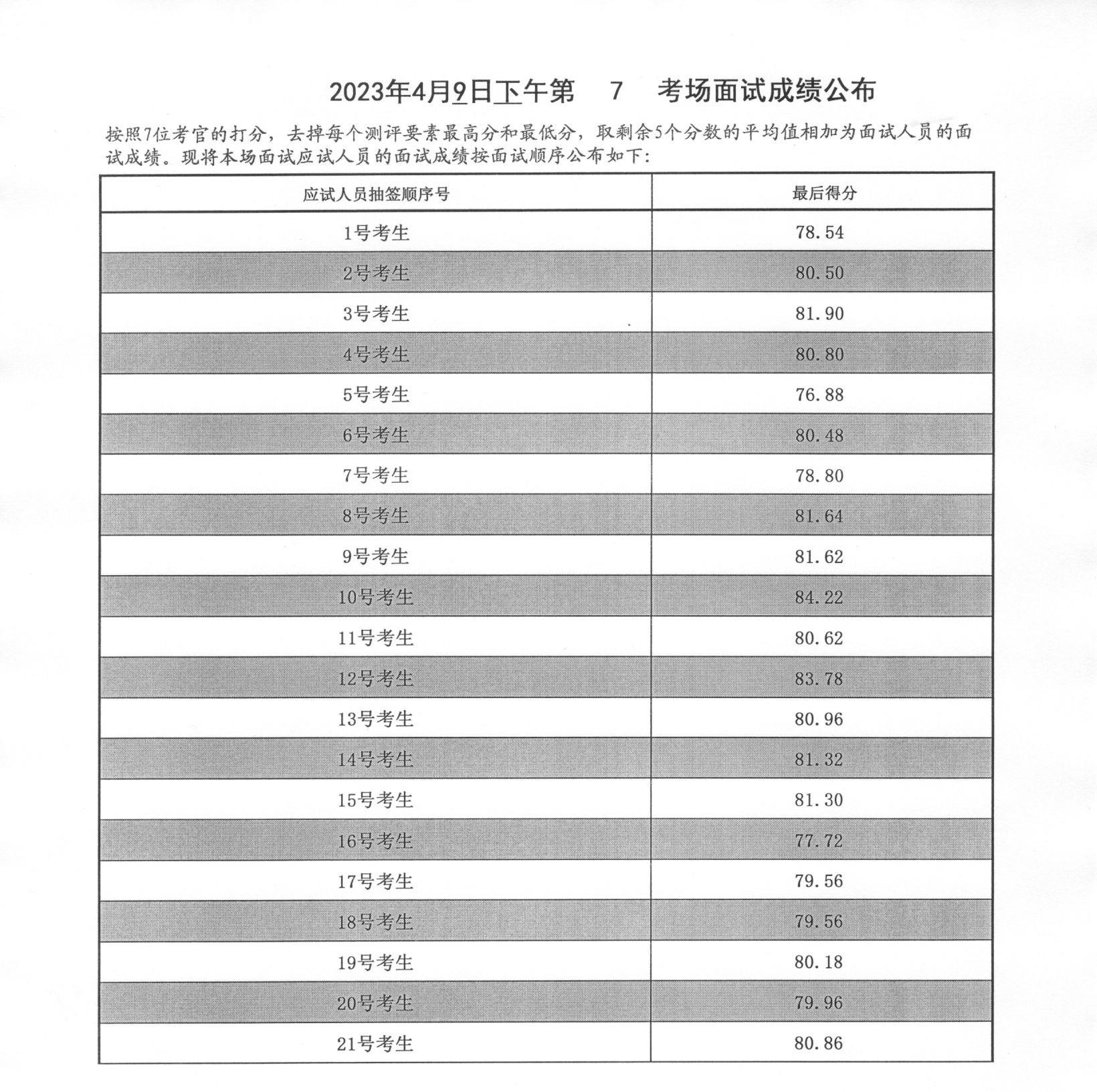 2023年山東泰安市公務(wù)員考試面試成績(4月9日下午)