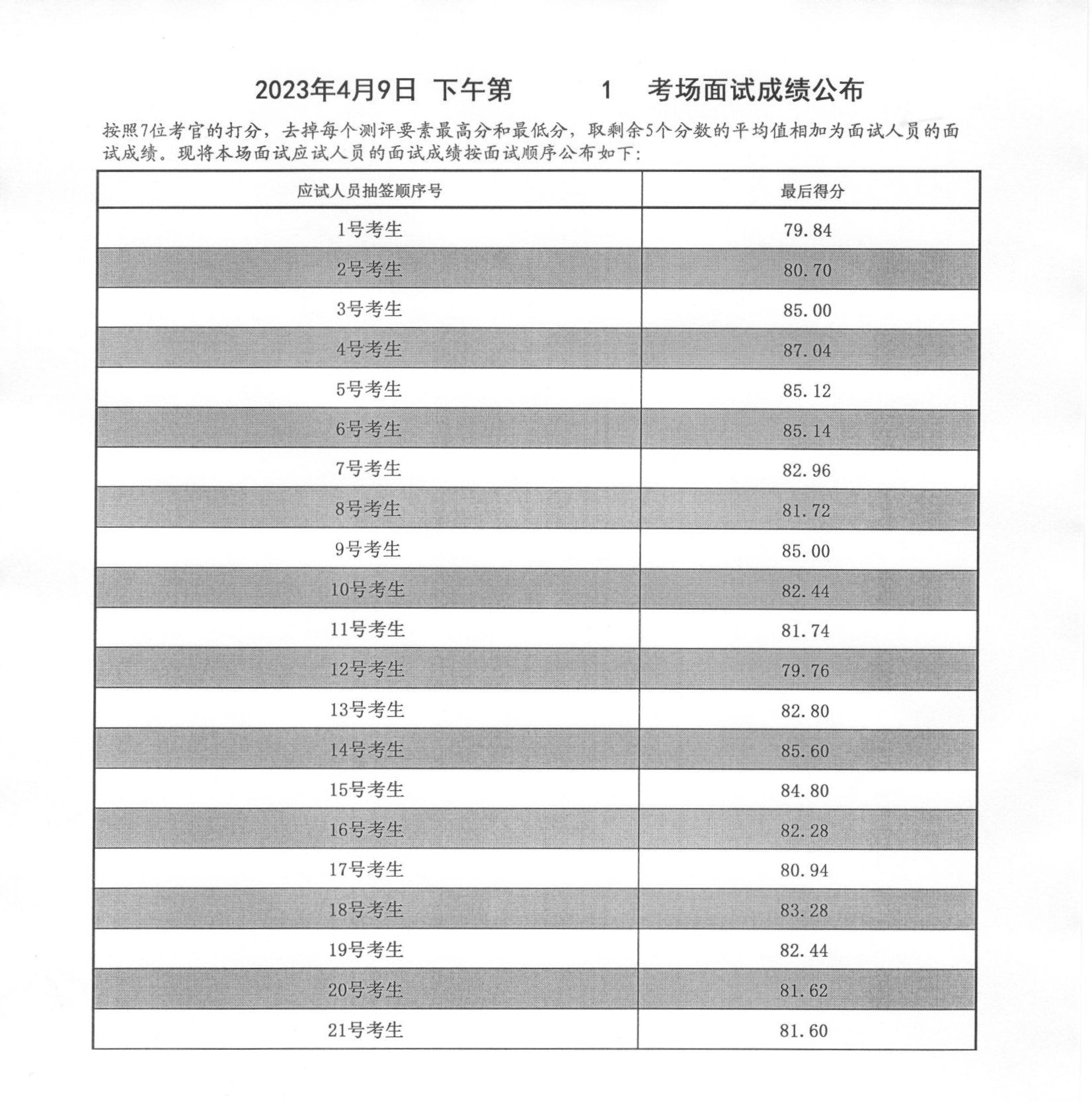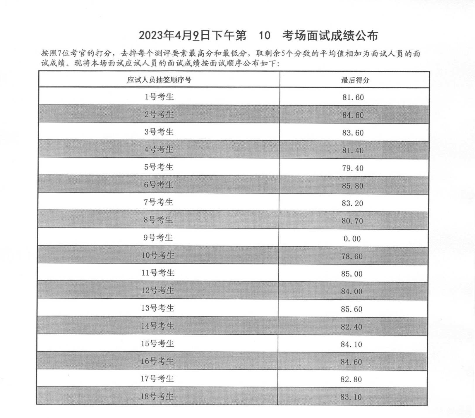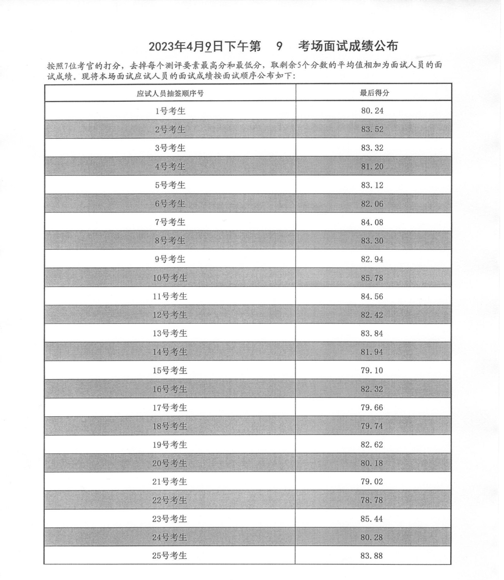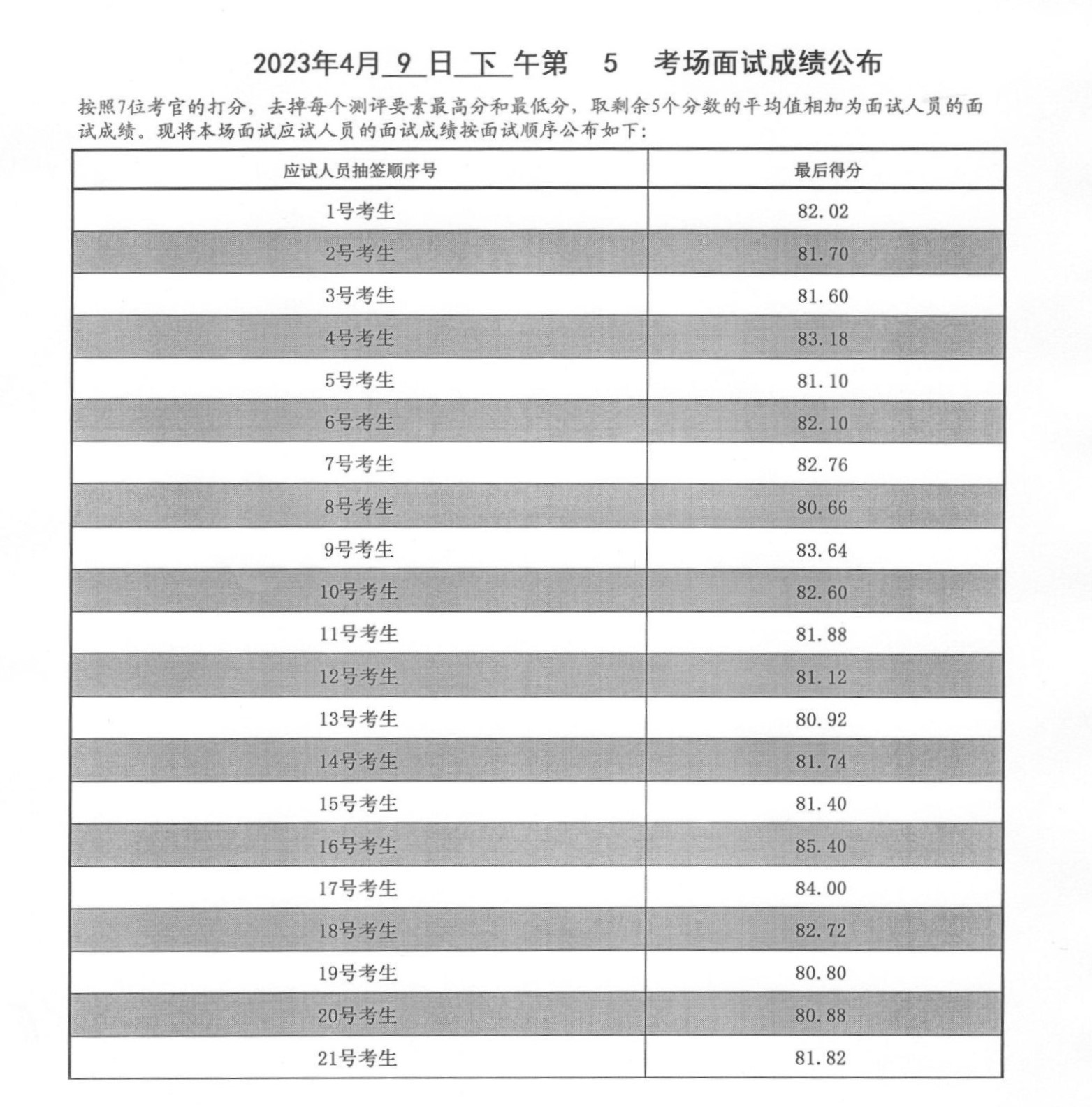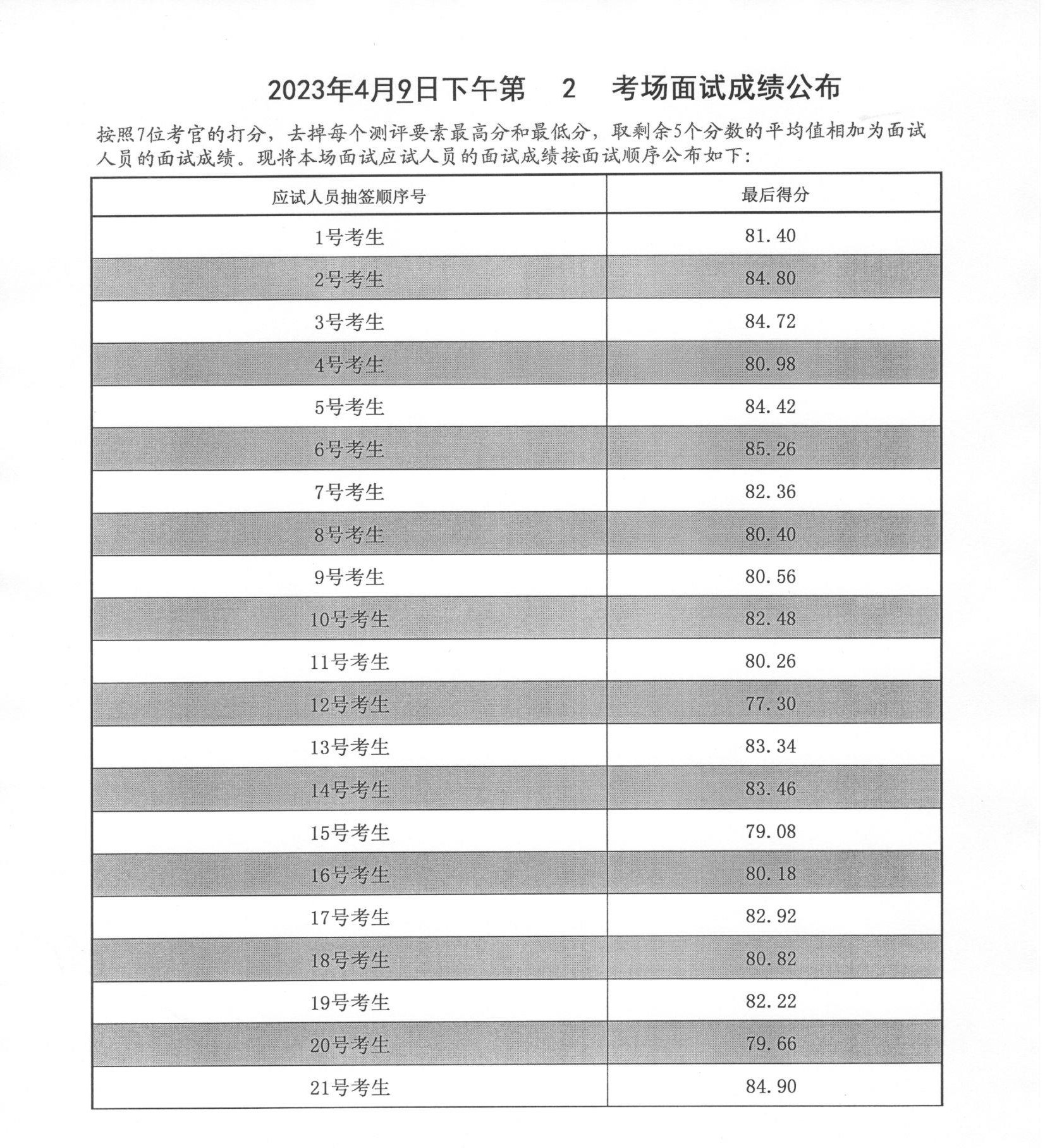 2023年山東泰安市公務(wù)員考試面試成績(4月9日下午)