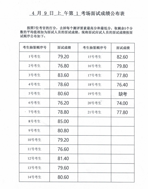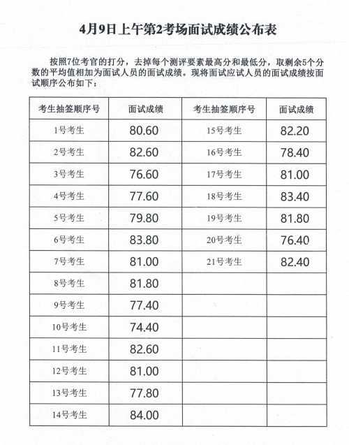 2023年山東威海市公務(wù)員考試面試成績(4月9日上午)