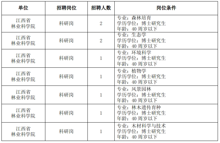 江西省林業(yè)科學(xué)院2023年公開招聘高層次工作人員公告