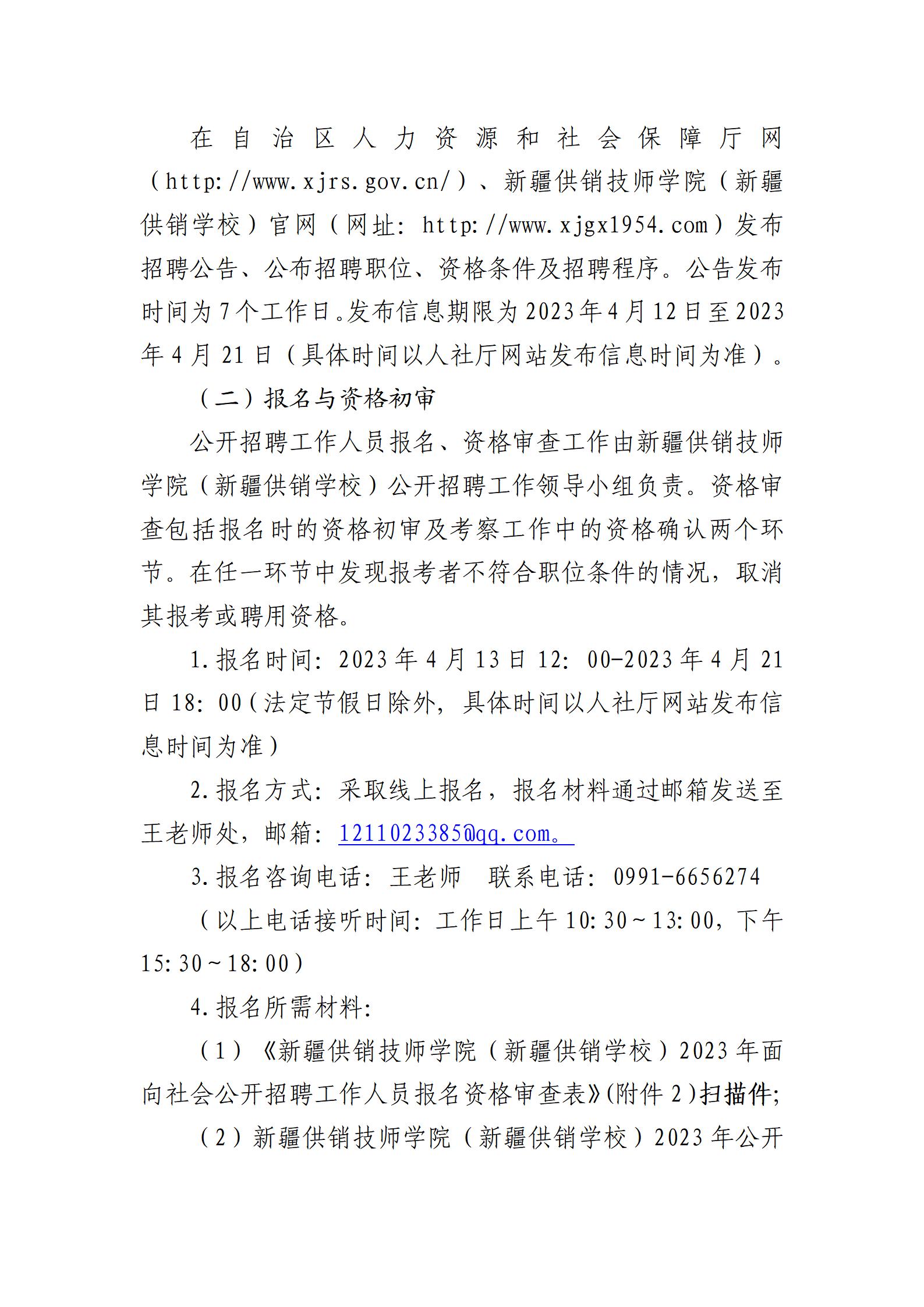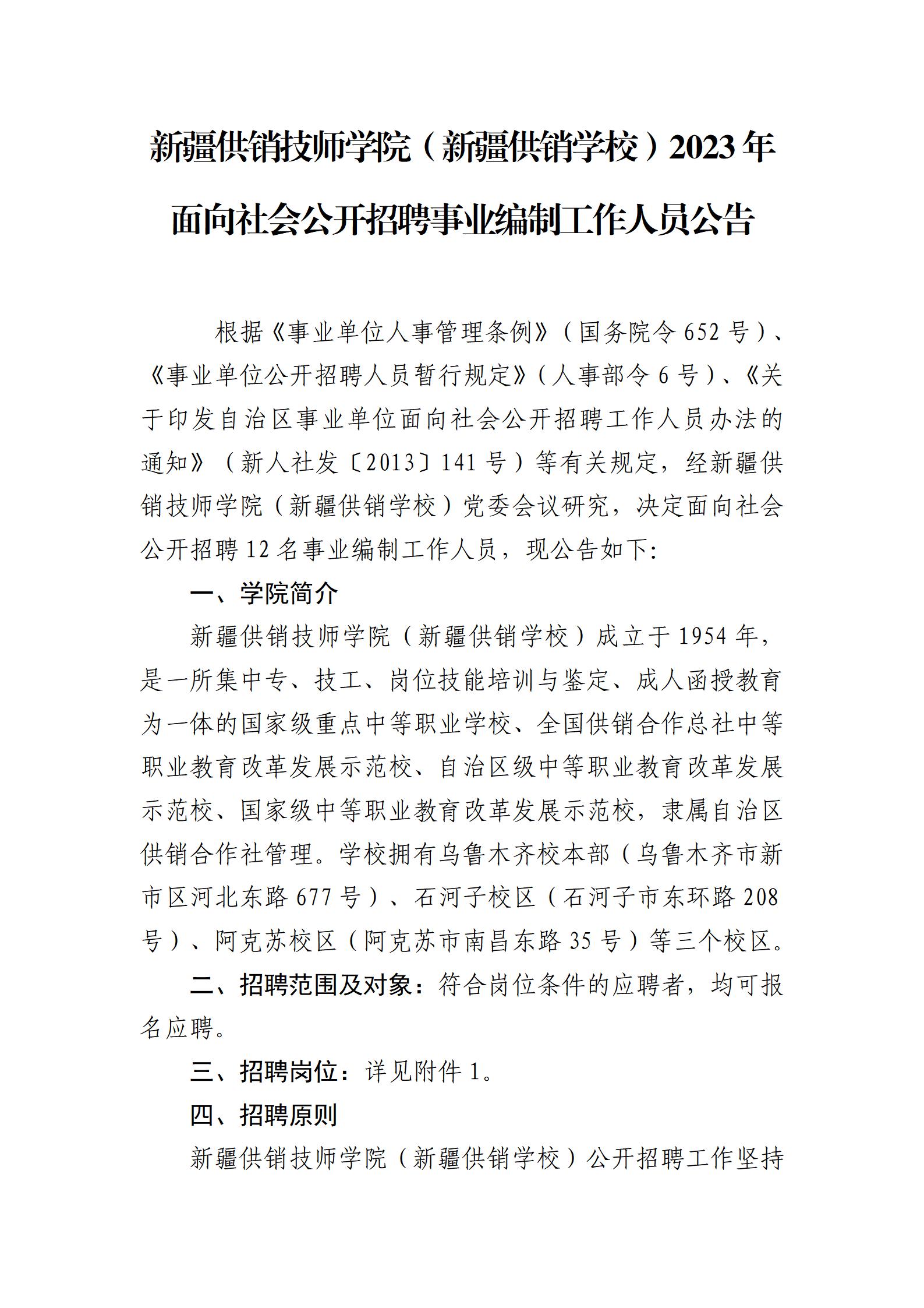 2023年新疆供銷技師學院新疆供銷技師學院(新疆供銷學校)招聘公告