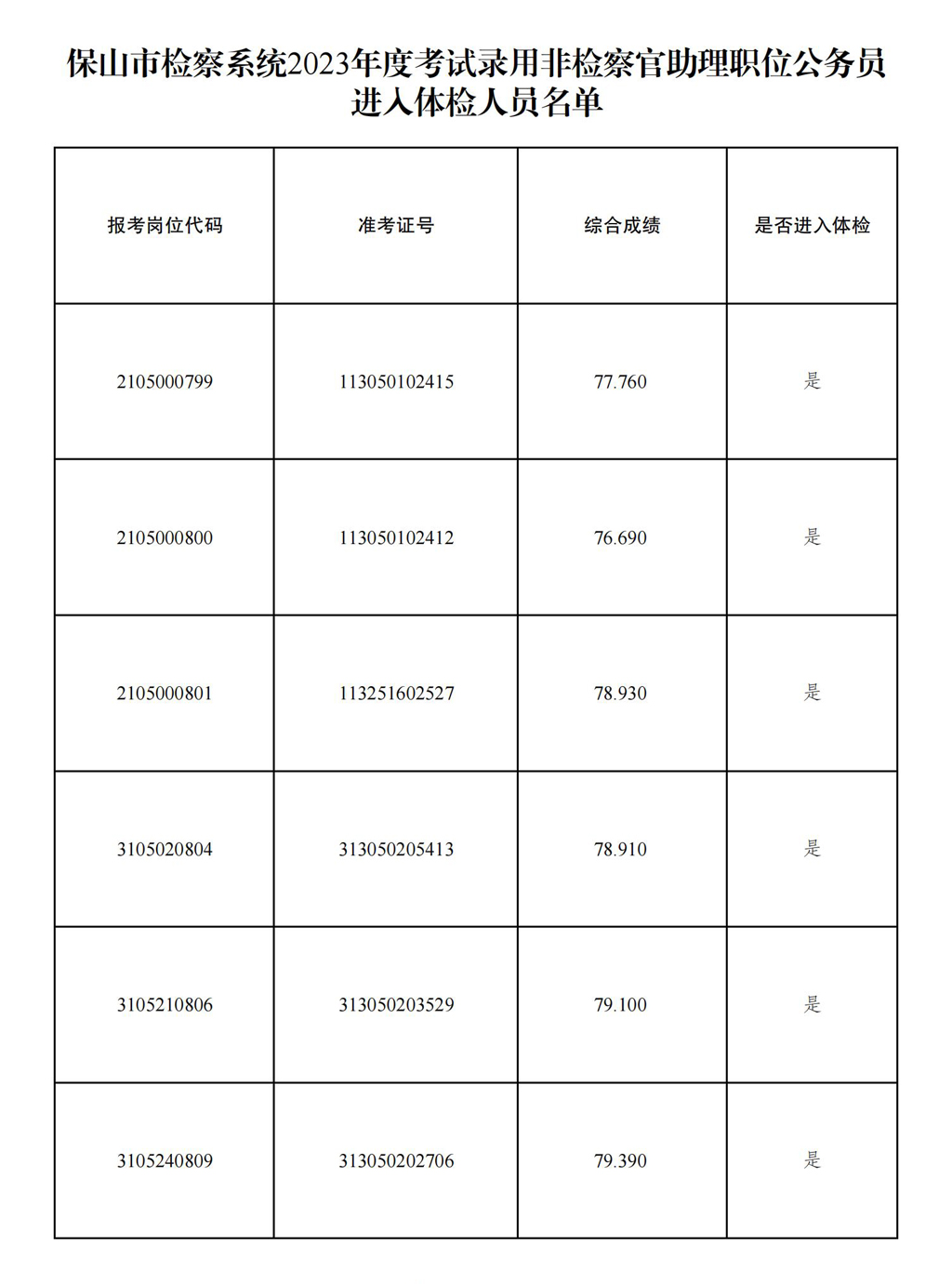 保山市檢察系統(tǒng)2023年度考試錄用非檢察官助理職位公務員體檢有關事項的通知