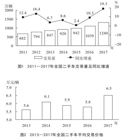 D.2011~2017年,全國二手車交易量同比增速低于10%的年份有4個