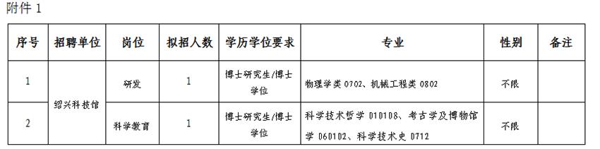 根據(jù)《事業(yè)單位人事管理條例》《紹興市事業(yè)單位公開招聘工作實施細則(試行)》的相關規(guī)定,經(jīng)研究,紹興科技館決定面向社會公開招聘優(yōu)秀博士研究生2名?,F(xiàn)將有關事項公告如下: