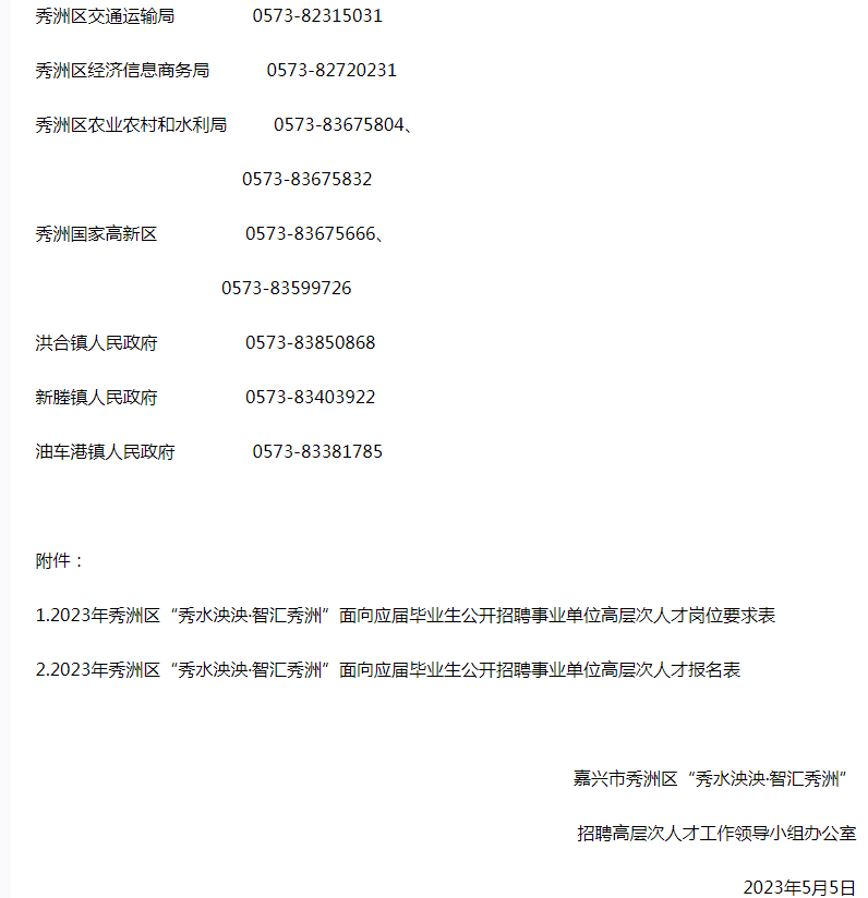 2023年秀洲區(qū)“秀水泱泱·智匯秀洲”面向應(yīng)屆畢業(yè)生公開招聘事業(yè)單位高層次人才公告