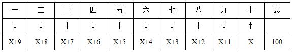 由題目已知,每人分得的冰水?dāng)?shù)都不相同,故可將環(huán)衛(wèi)工人按照分得水的瓶數(shù)由大到小排序(如上圖所示)。依據(jù)解題原則,共有100瓶冰水分給環(huán)衛(wèi)工人,分得最少的環(huán)衛(wèi)工人(也就是第十名)要盡可能大,在其對(duì)應(yīng)排名下標(biāo)上“向上箭頭”,那其余9名環(huán)衛(wèi)工人就要盡可能小,在其對(duì)應(yīng)排名下分別標(biāo)上“向下箭頭”。每名環(huán)衛(wèi)工人分得的冰水?dāng)?shù)互不相等且為整數(shù),而第一至第九名分得的水的最小值取決于最后一名,故設(shè)第十名環(huán)衛(wèi)工人分得X瓶冰水,則第九名要想取到最小值就需要盡可能接近第十名并大于第十名,所以最少也要比第十名多1瓶,故第九名最小值為X+1,以此類(lèi)推,第八名最小值為X+2,第七名最小值為X+3……,一共有100瓶冰水,由此可列:X+(X+1)+(X+2)+(X+3)+(X+4)+(X+5)+(X+6)+(X+7)+(X+8)+(X+9)=100,即10X+45=100,解得X=5.5,即第十名環(huán)衛(wèi)工人最多是5.5瓶,那么冰水的數(shù)量不能比5.5更多,而瓶數(shù)必為整數(shù),所以需要向下取整為5瓶。因此分得最少的環(huán)衛(wèi)工人至多分得5瓶冰水,則選C項(xiàng)。