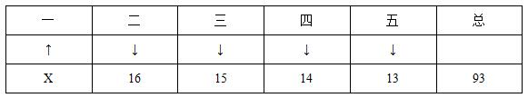由題目已知,每人得分各不相同,故可將5名學(xué)生按照成績(jī)由大到小排序(如上圖所示),此時(shí)要求排名第一的學(xué)生分?jǐn)?shù)最高,則使其他4名同學(xué)成績(jī)盡可能的低。此時(shí)在表中標(biāo)上相應(yīng)的箭頭(最高:向上箭頭,最低:向下箭頭)。已知最低為13分,且得分各不相同均為整數(shù),那么其他人要想盡可能的低,則設(shè)第一名為X,則第五、四、三、二名依次應(yīng)為13、14、15、16,共為93分,故有X+16+15+14+13=93,即X+58=93,解得X=35,故最高分最高為35分,選B項(xiàng)。