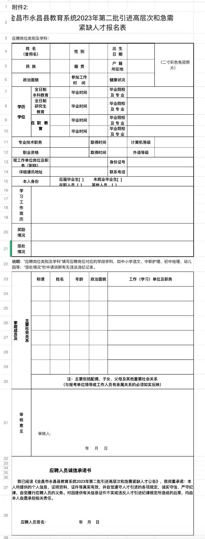 2.金昌市永昌縣教育系統(tǒng)2023年第二批引進高層次和急需緊缺人才報名表