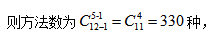 【答案】C【解析】結(jié)合題意,即將12個(gè)相同元素分給5個(gè)不同的對象,每個(gè)對象至少一個(gè),符合隔板模型的基本特征,