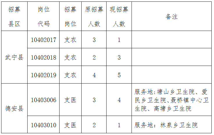 2023年九江市“三支一扶”招募部分崗位計(jì)劃調(diào)劑公告