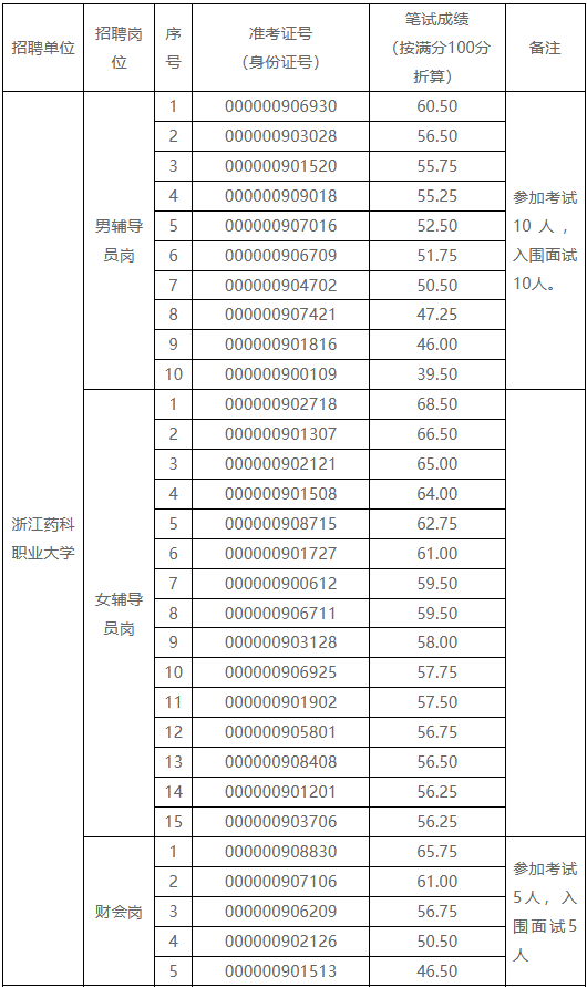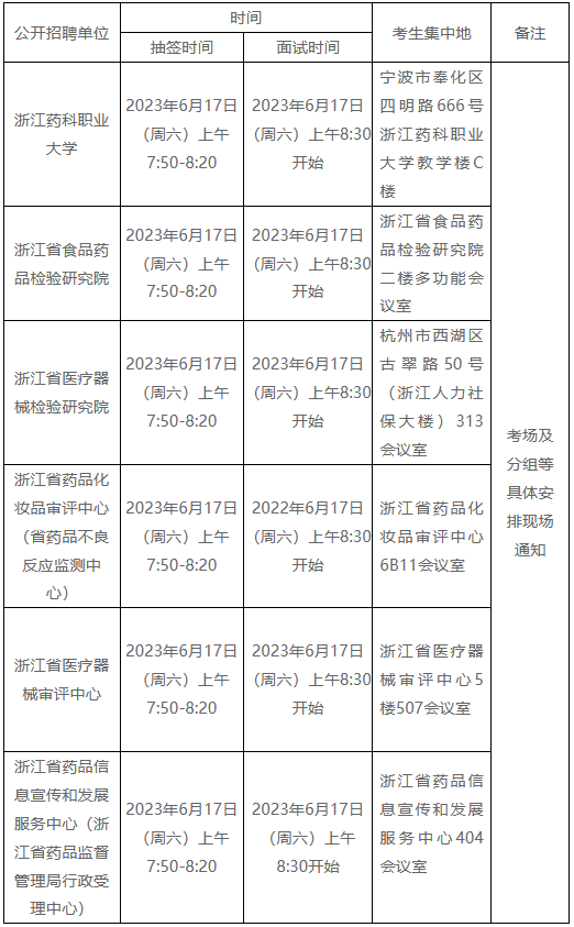 (最新)浙江省藥品監(jiān)督管理局所屬6家事業(yè)單位2023年公開招聘人員筆試結(jié)果及面試工作安排公告