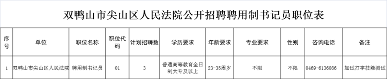 附件:《雙鴨山市尖山區(qū)人民法院公開招聘聘用制書記員職位表》?