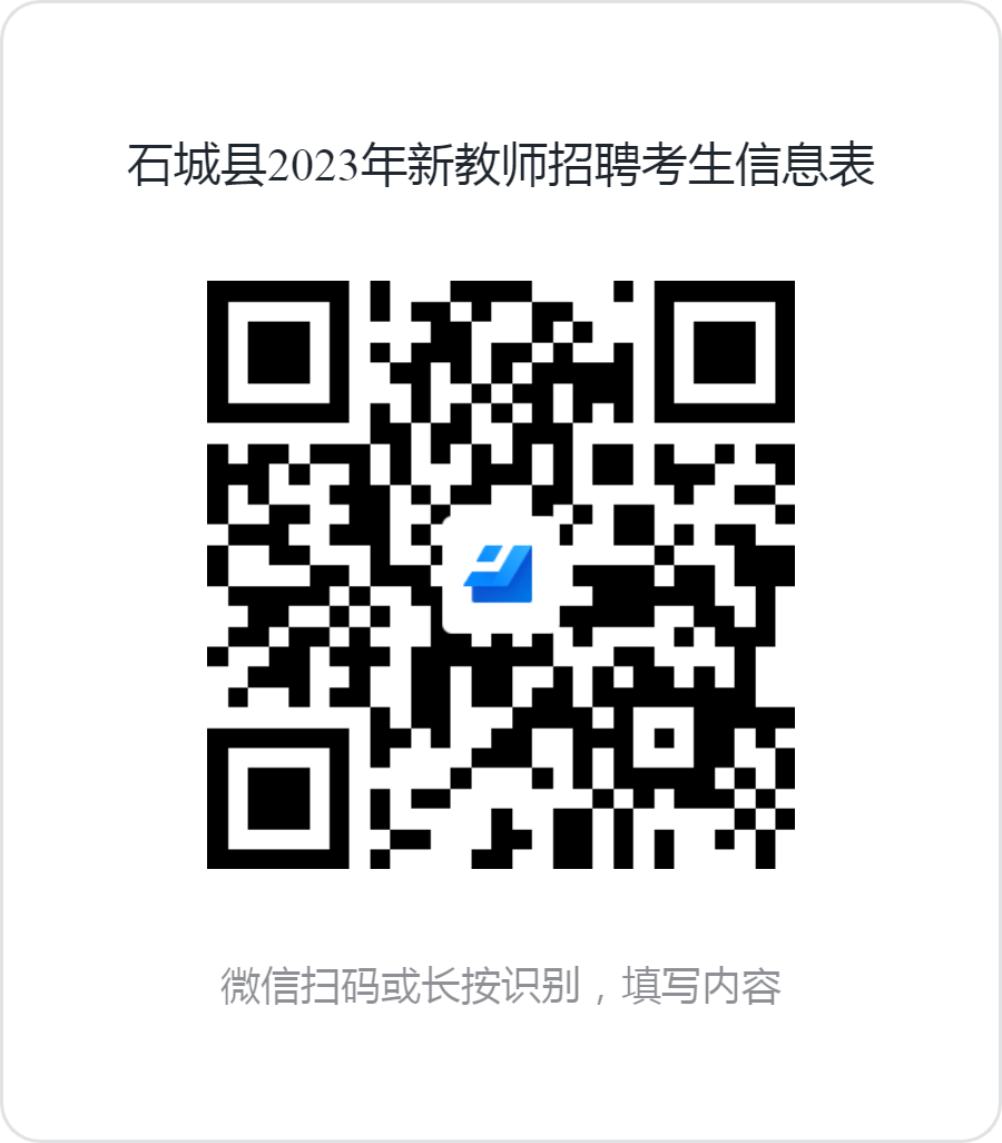注意:為了便于本此教師招聘工作的開展,請所有考生務(wù)必在現(xiàn)場資格審核前,識別下方二維碼在線填報《石城縣2023年新教師招聘考生信息表》。