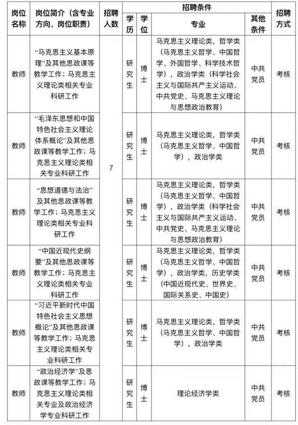 為了落實國家關于進一步加強馬克思主義學院建設的要求,東北財經大學馬克思主義學院2023年擬招聘7名思想政治理論課教師,擬招聘人員的計劃信息如下: