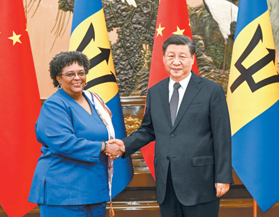 習(xí)近平指出,面對世界百年未有之大變局,廣大發(fā)展中國家要加強(qiáng)團(tuán)結(jié)合作,踐行真正的多邊主義,反對冷戰(zhàn)思維和陣營對抗,維護(hù)國際關(guān)系基本準(zhǔn)則,維護(hù)國際公平正義,推動(dòng)構(gòu)建人類命運(yùn)共同體。中方充分理解巴巴多斯等小島嶼發(fā)展中國家在氣候變化領(lǐng)域的訴求,愿繼續(xù)加強(qiáng)應(yīng)對氣候變化南南合作,為包括巴巴多斯在內(nèi)的發(fā)展中國家提供幫助和支持。中方從戰(zhàn)略高度和長遠(yuǎn)角度重視同加勒比關(guān)系,將繼續(xù)為加方經(jīng)濟(jì)社會(huì)發(fā)展提供力所能及幫助。