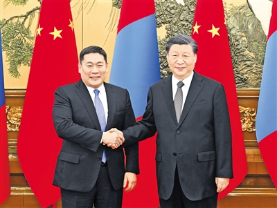 習(xí)近平指出,中蒙山水相連、毗鄰而居,發(fā)展長(zhǎng)期睦鄰友好關(guān)系是雙方一道作出的戰(zhàn)略選擇,完全符合兩國(guó)人民根本利益。中方高度重視發(fā)展中蒙關(guān)系,是蒙古國(guó)可以信賴和倚重的伙伴。中方愿同蒙方一道,以構(gòu)建中蒙命運(yùn)共同體為引領(lǐng),不斷深化兩國(guó)友好、互信、合作,推動(dòng)中蒙全面戰(zhàn)略伙伴關(guān)系向更高水平邁進(jìn),為本地區(qū)注入更多穩(wěn)定性和確定性。
