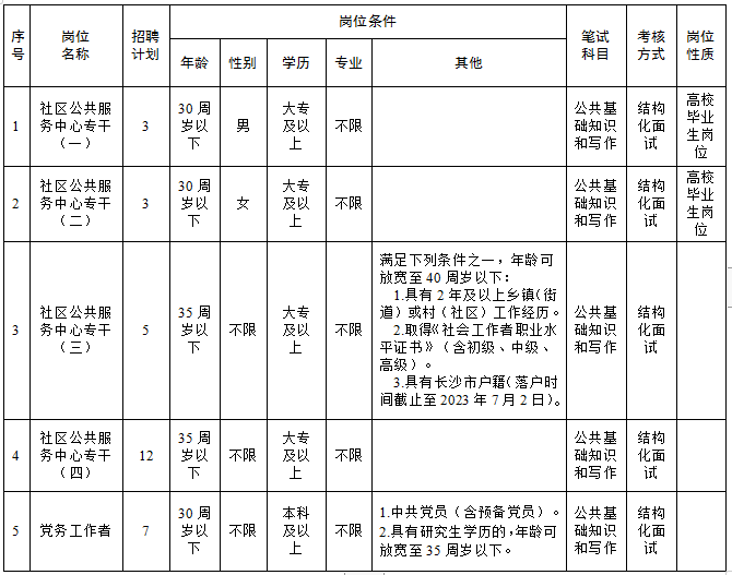 根據(jù)《雨花區(qū)社區(qū)專(zhuān)職工作人員員額管理辦法(試行)》(雨辦〔2018〕12號(hào))和《雨花區(qū)關(guān)于加強(qiáng)社區(qū)專(zhuān)職工作人員管理服務(wù)的十條措施(試行)》(雨組通〔2022〕9號(hào))等文件精神,結(jié)合工作需要,經(jīng)研究,決定面向社會(huì)公開(kāi)招聘30名社區(qū)專(zhuān)職工作人員?,F(xiàn)將有關(guān)事項(xiàng)公布如下: