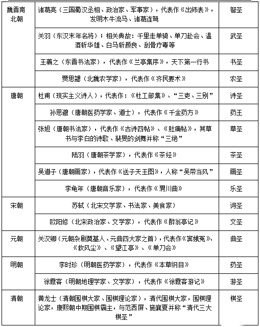但后續(xù)隨著時代的變遷,后世人習(xí)慣將在某個領(lǐng)域取得巨大成就或具有代表性的人物稱為圣賢,如畫圣吳道子、史圣司馬遷、茶圣陸羽等。隨著歷史長河的奔流不息,各個領(lǐng)域的代表人物逐漸嶄露頭角。