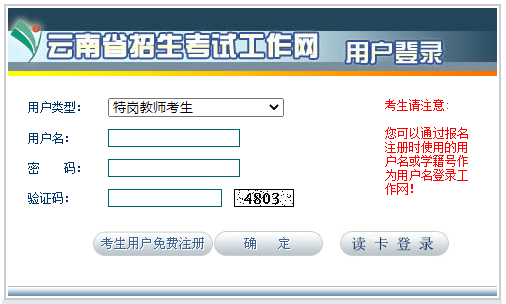 考生登陸云南省招生考試工作網(wǎng)(http://work.ynzs.cn/ZSGL/login.jsp),按照系統(tǒng)提示打印本人準(zhǔn)考證??荚嚂r(shí),考生需持本人準(zhǔn)考證和有效居民身份證原件(有效期內(nèi)的居民身份證或臨時(shí)居民身份證)到指定地點(diǎn)參加考試。兩證不全者不得參加考試。居民身份證遺失或過(guò)期,應(yīng)及時(shí)到戶(hù)籍所在地公安機(jī)關(guān)補(bǔ)辦臨時(shí)居民身份證參加考試。