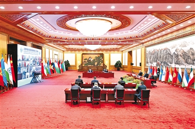 7月4日下午,國家主席習(xí)近平在北京以視頻方式出席上海合作組織成員國元首理事會第二十三次會議并發(fā)表題為《牢記初心使命堅持團結(jié)協(xié)作實現(xiàn)更大發(fā)展》的重要講話。新華社記者申宏攝