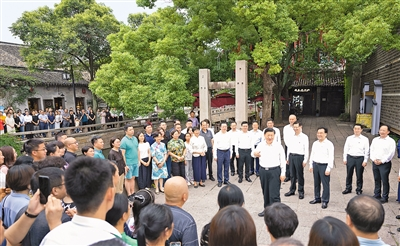 街邊小廣場(chǎng)上,曲樂悠揚(yáng),當(dāng)?shù)鼐用窈陀慰驼谛蕾p蘇州評(píng)彈表演??吹娇倳泚砹?,大家紛紛向總書記問好。習(xí)近平饒有興致地同大家一起觀看表演,他對(duì)大家說,昨天我看了工業(yè)園區(qū),今天又看了傳統(tǒng)文化街區(qū),到處都是古跡、名勝、文化,生活在這里很有福氣。蘇州在傳統(tǒng)與現(xiàn)代的結(jié)合上做得很好,不僅有歷史文化傳承,而且有高科技創(chuàng)新和高質(zhì)量發(fā)展,代表未來的發(fā)展方向。他對(duì)當(dāng)?shù)刎?fù)責(zé)同志講,平江歷史文化街區(qū)是傳承弘揚(yáng)中華優(yōu)秀傳統(tǒng)文化、加強(qiáng)社會(huì)主義精神文明建設(shè)的寶貴財(cái)富,要保護(hù)好、挖掘好、運(yùn)用好,不僅要在物質(zhì)形式上傳承好,更要在心里傳承好。