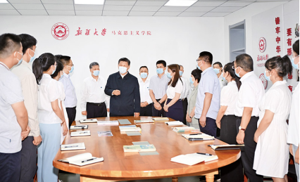 2022年7月12日至15日,中共中央總書記、國家主席、中央軍委主席習(xí)近平在新疆考察。這是12日下午,習(xí)近平在新疆大學(xué)鑄牢中華民族共同體意識研究基地,同師生親切交流。新華社記者李學(xué)仁/攝
